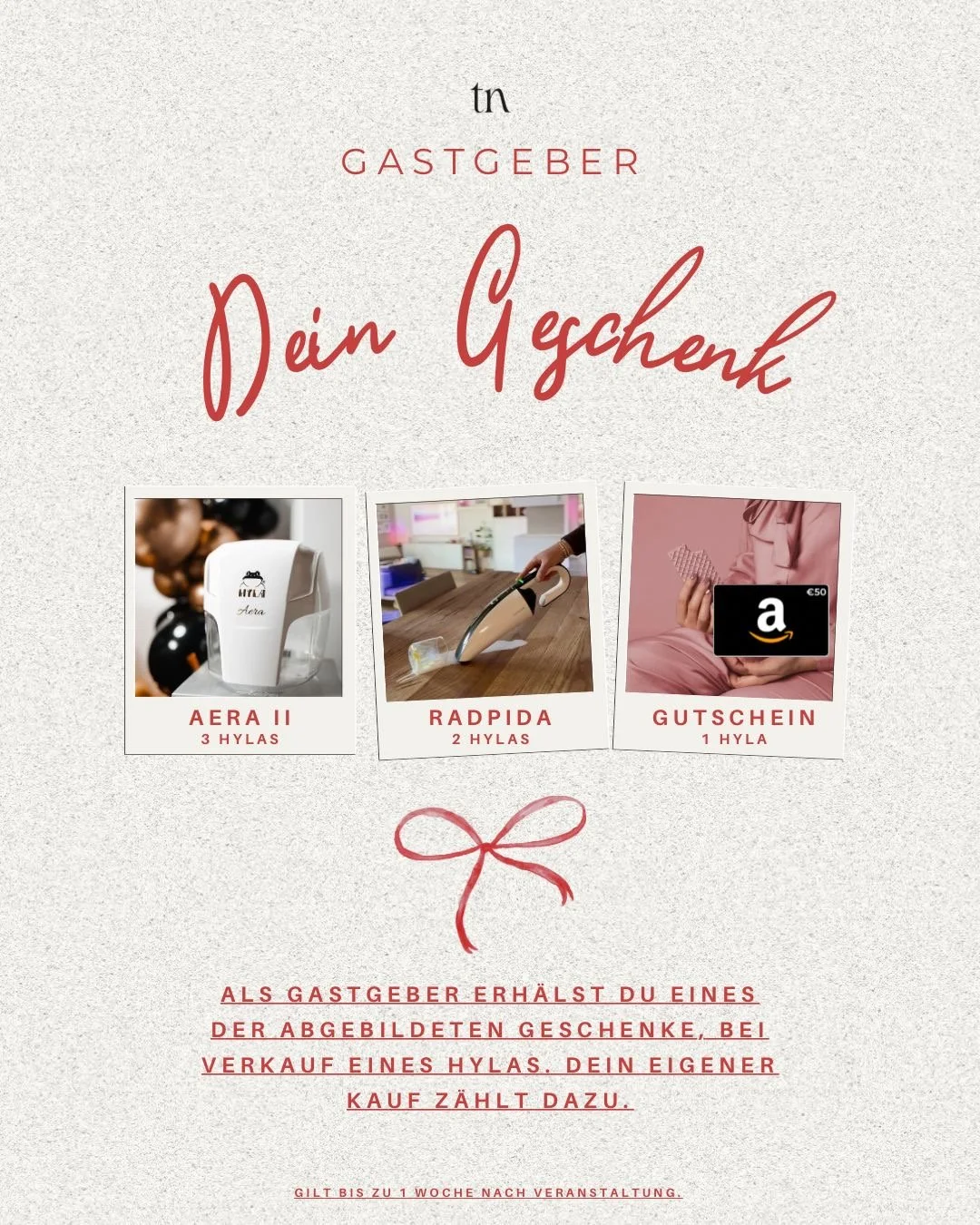 Als Gastgeberin erhältst du ein tolles Dankeschön-Geschenk, wenn ein HYLA verkauft wird.